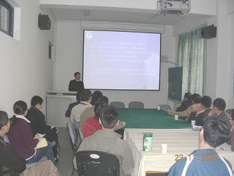 2007年11月23日下午,烟台大学凝聚态物理研究中心的戴振宏教授应邀为91制片厂 老师和研究生做了“低维纳米结构的含时动态量子输运特性”的学术报告,戴振宏教授系统介绍了低维纳米结构的研究历史,详细阐述了该领域近年来的实验和理论研究成果。戴教授领导的研究小组利用数值模拟的方法从理论上对此类结构进行了详细的研究,解释了它的微观物理机制。戴教授还介绍了他们研究小组的成员以及与清华大学和中科院物理所的学术合作项目。报告会结束后,戴教授与91制片厂 师生进行了讨论和学术交流。
