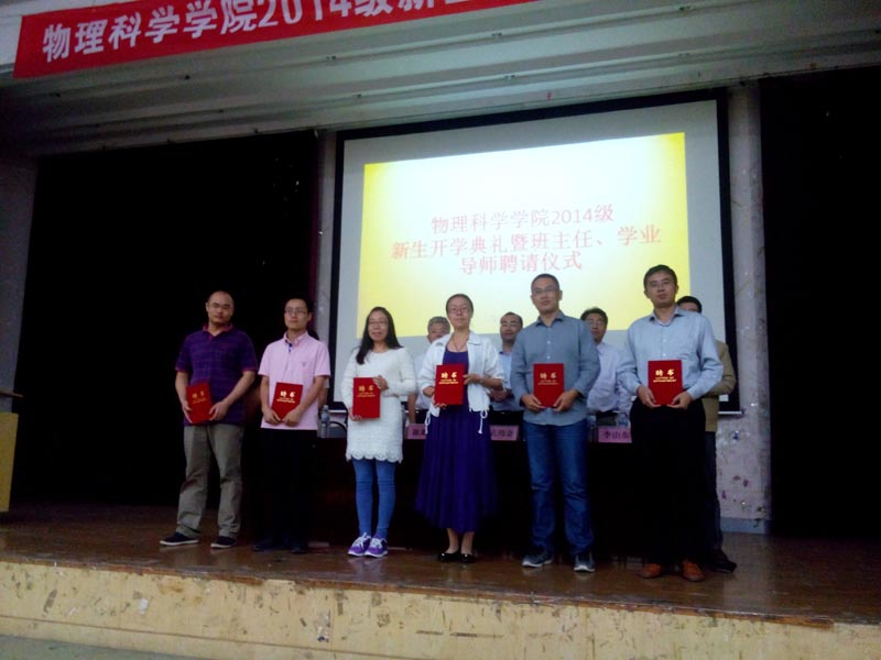 开学典礼由学院党委副书记牟晓燕主持,她代表学院对新生表示热烈欢迎和衷心祝贺。基础物理教学中心主任何丽珠代表学院教师致辞,她鼓励新生满怀热情、坚定信念学好专业知识,做一名可以创造机会的强者。2011级学生刘宇婧代表老生发言,她结合自身经历从知识、社交、实践三方面讲述了个人对大学生活的认识,并建议新生加强和同学、老师的交流,在他人的建议中进行自我修正。2014级学生秦志豪代表新生发言,他表示会快速地融入大学生活,学会包容,持之以恒,努力实践,不做懦弱的退缩。