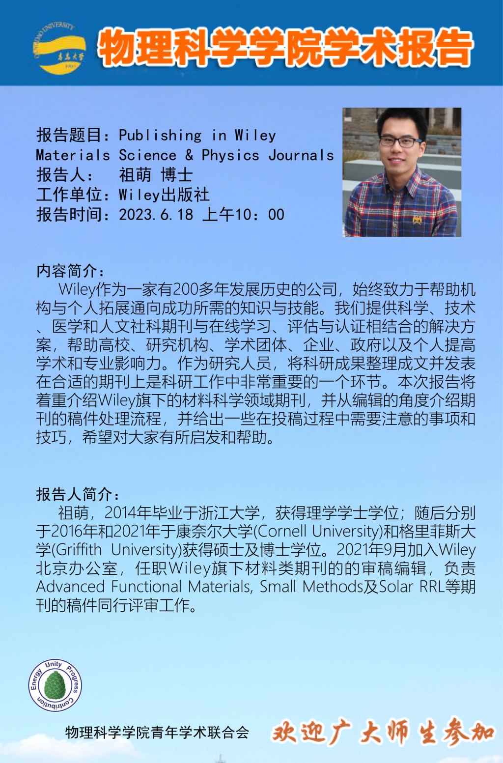 [学术活动]祖萌-Publishing in Wiley Materials Science & Physics Journals