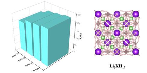 该研究采用遗传算法结合密度泛函理论,对三元氢化物锂-钾-氢体系进行了系统的研究。研究表明,具有H20和H28笼状结构的Fd-3m-Li2KH17在200 GPa的压强下展现出由氢笼结构主导的强电子-声子耦合,其超导转变温度预计可达238 K。更有趣的是,第一性原理分子动力学模拟显示,该结构在200 GPa的压强和800 K的温度条件下会进入超离子态,氢原子在笼状结构顶点间发生飞秒尺度的连续跳跃运动。这些发现揭示了高压氢化物中超导与超离子态的共存现象,对于理解氢化物的多样物性及其在极端条件下的行为机制提供了理论基础。