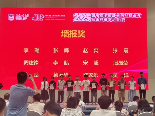 硕士研究生张震(指导老师是张红娣副教授和龙云泽教授)的成果“通过静电纺丝组装技术实现可控锂枝晶生长和热闭合双重安全的锂离子电池隔膜”荣获优秀墙报奖。
