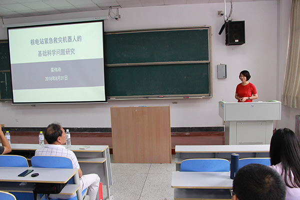 与我”、“我现在工作的单位——华东理工大学”、“核电站紧急救灾机器人抗失效防护”3个部分。栾伟玲首先以回忆为主线,通过展示班级照片、同学录以及讲述大学故事等带领大家走进了她的大学时代。随后,她从发展历史、学科和师生规模、人才队伍、科研基地、人才培养、国际荣誉等方面系统介绍了华东理工大学的基本情况。最后,栾伟玲重点介绍了核电站紧急救灾机器人抗失效防护的基本知识。发展核电是我国能源战略的既定政策,栾伟玲用一句“人类会犯意想不到的错误,自然界会发生超乎人类想象的灾害”引出了核环境作业机器人,并对研究核环境作业机器人过程中遇到的问题、难点等进行了讲解,从设计思路到材料研究再到理论模拟到最后的创新点,让大家看到了科研过程的艰辛以及科研工作人员的认真。