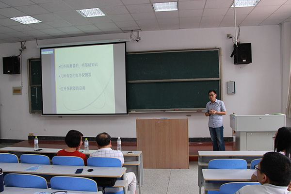 刘大福在报告中首先介绍了红外探测器的一些基础知识,包括黑体辐射的有关定律、光电效应及其与光电探测器之间的转换、半导体光电探测器的基本原理、半导体的基本性质因素、半导体光电探测、红外探测器的分类、红外探测器与光电仪器之间的联系等。接着,他为大家介绍了几种典型的红外探测器,其中比较典型的是铟镓砷红外探测器,该探测器用于短波红外,可以提供丰富的可见光以及中波、长波红外所没有的信息。最后,刘大福介绍了探测器在气象卫星中的应用,为大家讲解了气象卫星的重要作用。报告结束后,刘大福欢迎大家考取上海技术物理研究所研究生。