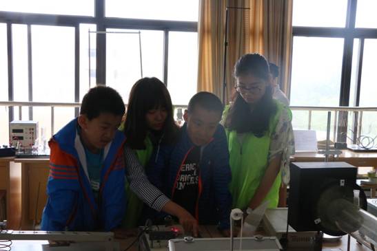 演示实验室,并在讲解员的帮助下自己动手完成了一些简单的物理实验。